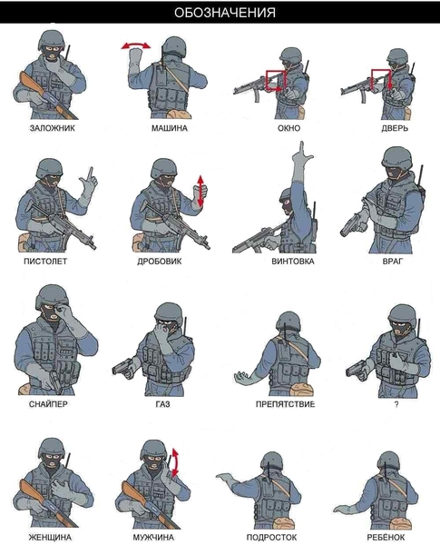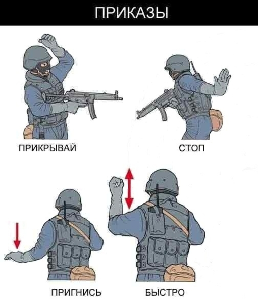 Ты не раз мог видеть, как в фильмах бойцы спецназа общаются между собой при помощи жестов. После нескольких движений рукой, все в группе понимают, о чем идет речь, и начинается штурм. Если хочешь быть в "спецназовской теме", то нужно знать жесты спецназа, которые они используют для общения между собой.