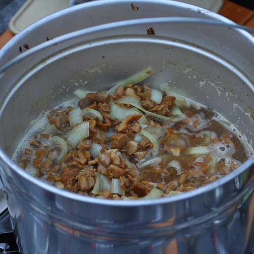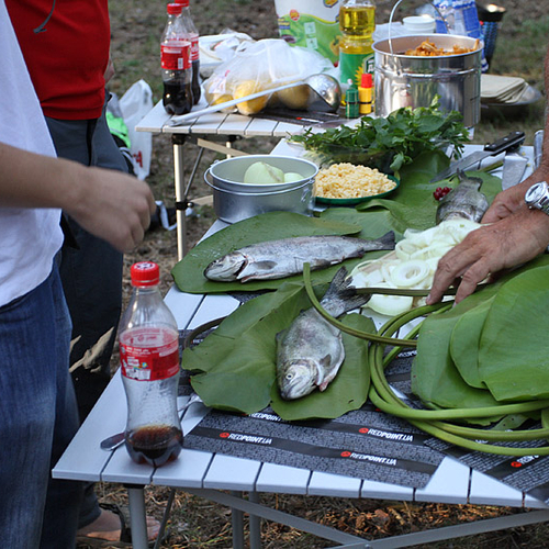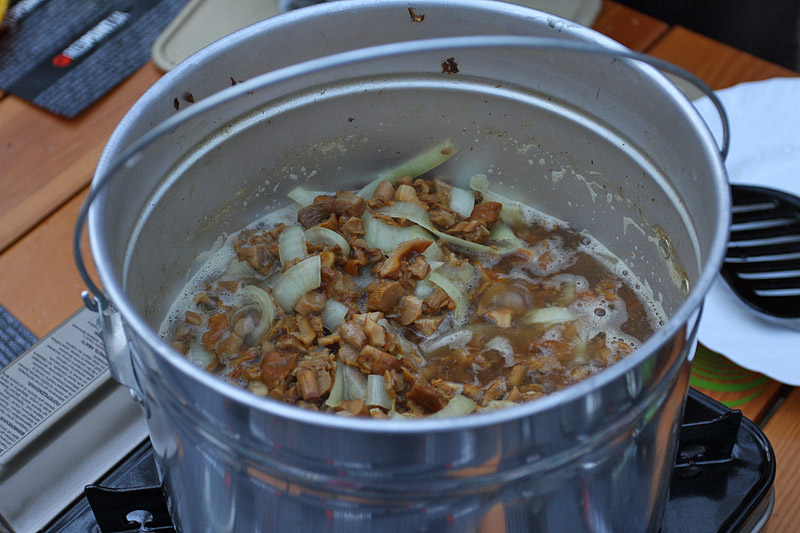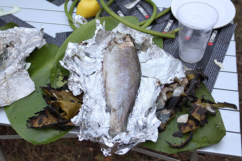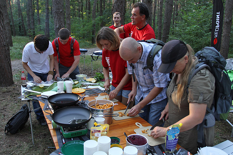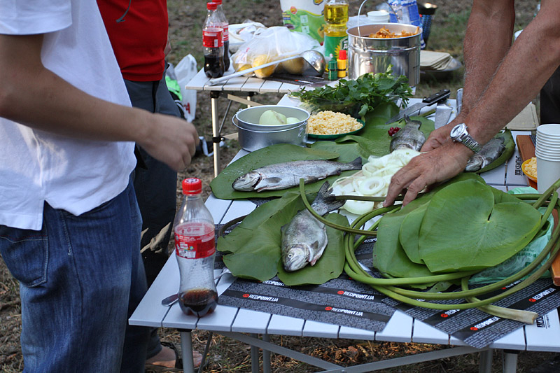 Самым полезным и познавательным, безусловно, был мастер-класс по полевой кухне. Альпинисты со стажем показали, как можно приготовить еду из подручных средств (например, запечь пойманную рыбу в листьях или же сделать блинчики в походе). Кроме того, удалось полакомиться изысками туристической жизни - специально был приготовлен жульен из лисичек.