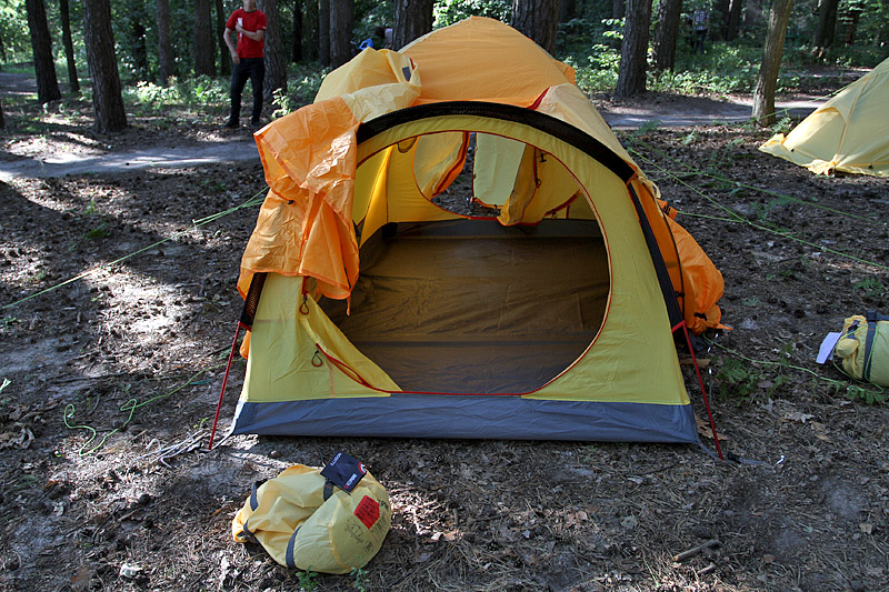 В "модельном ряду" компании есть простые туристические палатки, большие кемпинговые палатки, и палатки для восхождений. Сразу скажу, что на всей продукции марки используются только замки YKK и фурнитура Duraflex. Цены на палатки варьируются от 1,2 тыс. грн. до 2,5 тыс. грн., в зависимости от модели.