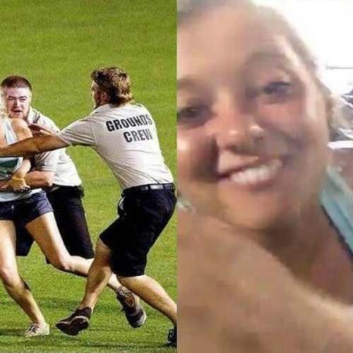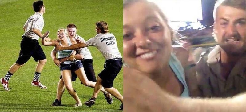 Кайли Хил, живущая в Небраске, так набралась впечатлений от бейсбола, что выбежала на поле во время игры (город Омаха). И сделала селфи. Интернет обошли не только фото журналистов, но и снимок самой Кайли на фоне разъяренного охранника.
