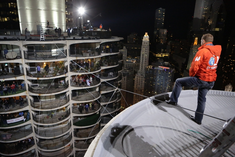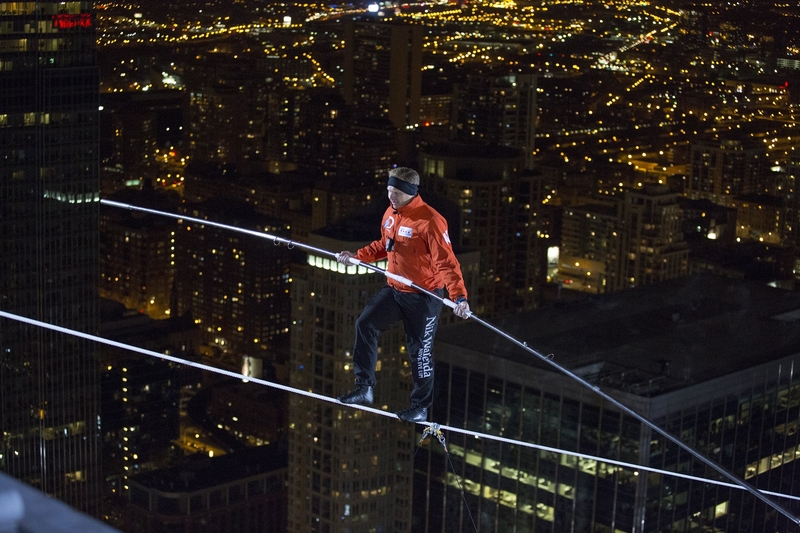 Тем, кто не читал о заслугах Ника Валленды перед отечеством, сюда. А все остальные должны гордиться тем, что нашелся мужчина, который не побоялся прогуляться по тросу, натянутому между небоскребами Чикаго.