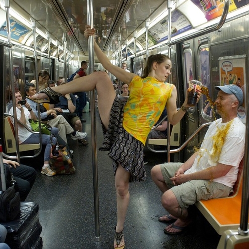 Кто сказал, что кататься в метро — тоска зеленая. Присмотрись внимательнее к окружающим: вдруг среди них есть обнаженная барышня, президент страны, или сам Арнольд Шварценеггер