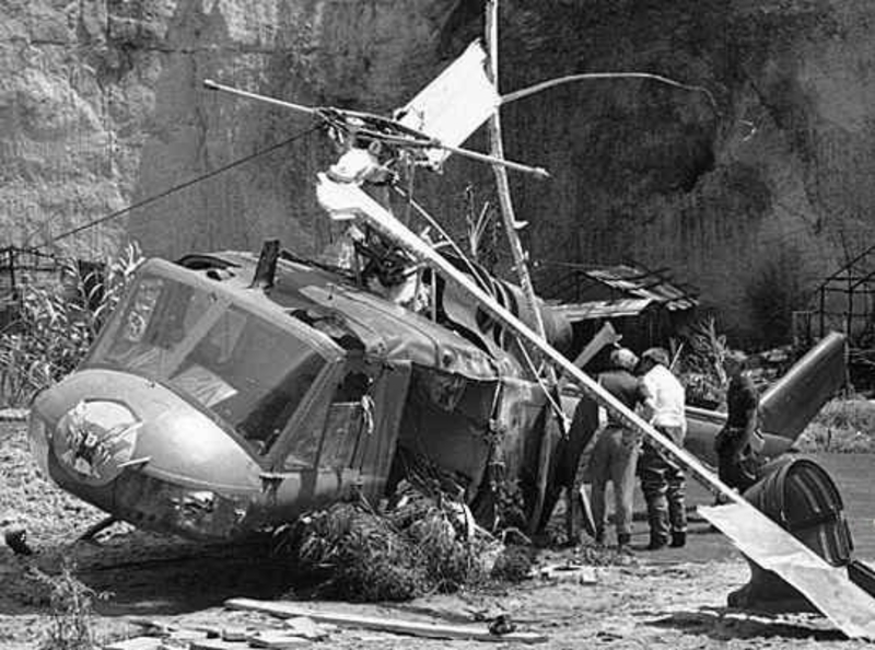 Во время съемок вьетнамского сражения пилот вертолета не справился с управлением, и тот рухнул на землю, убив при этом трех актеров – Вика Морроу, 7-летнюю Му-Са Динь Ли и 6-летнего Рене Шин-Йи. При этом мужчине и одному из детей отрубило голову винтовыми лопастями.