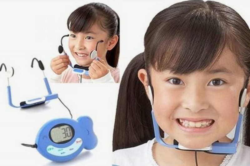 В краях скобы установлены электроды, которые стимулируют мимические мышцы, заставляя их фиксироваться в улыбке. Сей безобидный девайс тоже страх как напоминает орудие для пыток: “Не будешь улыбаться, долбанем тебя током!“.