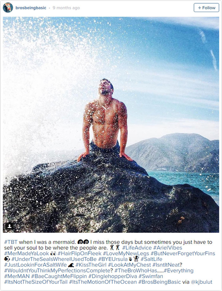 Bros Being Basic — аккаунт в Instagram, в котором публикуются пародии на типичное женское поведение в соцсети. Главные герои — обычные мужики, примеряющие на себя роль очередной звезды Instagram'а.