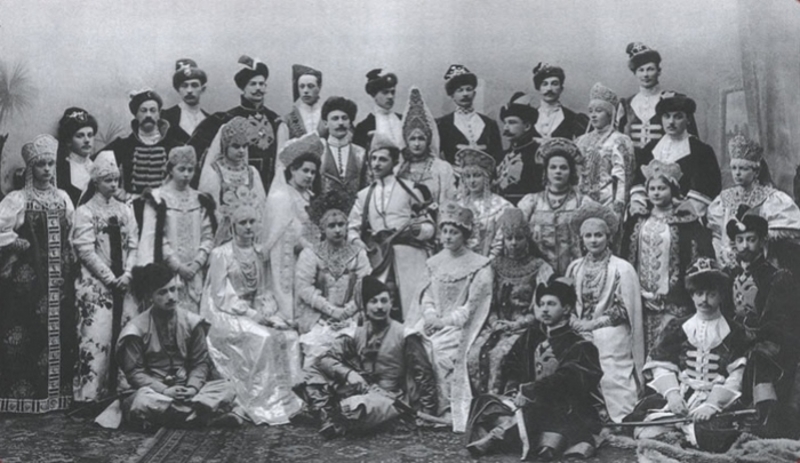 Так вот: изображена там отнюдь не деревенщина, а участники последнего костюмированного бала при императорском дворе Романовых, состоявшегося в Зимнем дворце Санкт-Петербурга в феврале 1903 года. Это был самый грандиозный и крутой ивент времен царствования Николая II. А еще это оказался последний придворный бал императорской России.