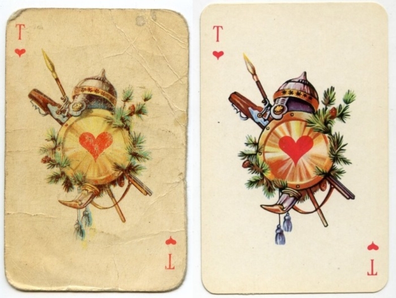 А потом был Русская революция, с которой работу Александровской мануфактуры приостановили. С ней — и “производство“ колоды карт. Возобновили все только в 1923-м. Благодаря сему советский художник Юрий Иванов и смог срисовать “Русский стиль“, чтобы потом точно такие же карты запустить в офсетную печать.