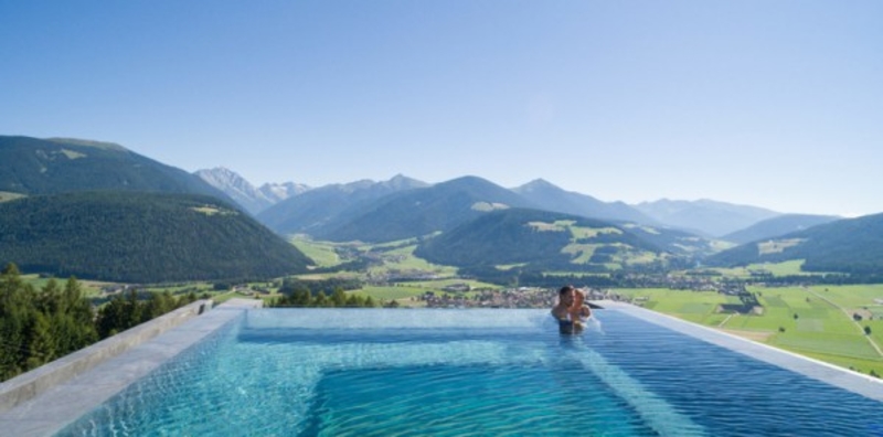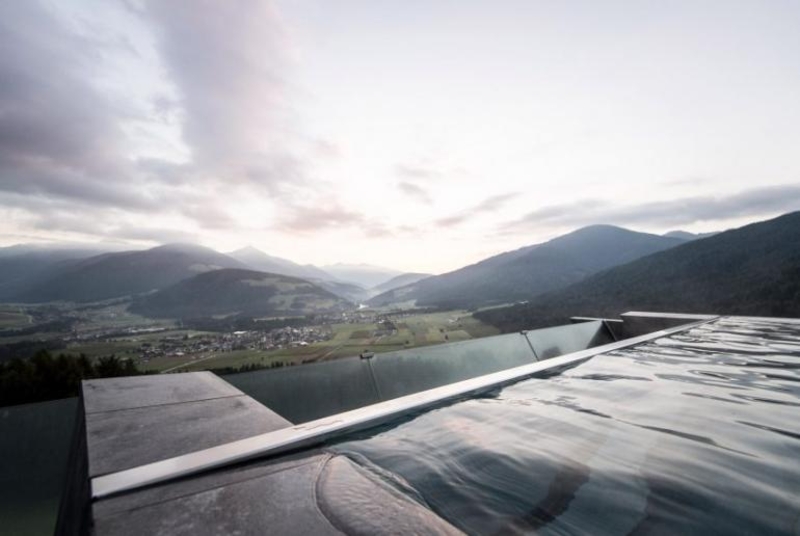 Бассейн соорудили в отеле Hotel Hubertus. Это развлечение находится на высоте 12 метров, длиной 25 метров, и имеет низкие бортики + стеклянная передняя стенка — чтобы гостям, решившим там искупаться, было по-настоящему страшно.