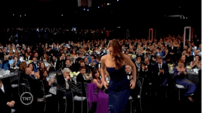 На премии SAG Awards Дженнифер надела, а потом и порвала слишком длинное платье. Как и полагается, сделала это у всех на виду.