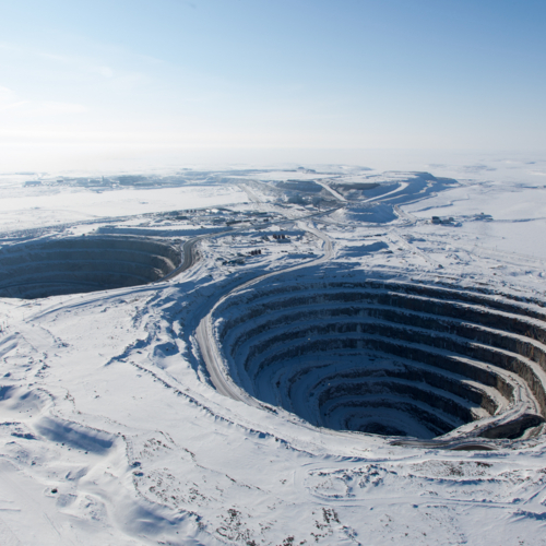 Еще одно довольно крупное месторождение алмазов. Находится в Канаде. Разведка местности ведется с 1992 года, разработка карьера началась в 2001 году. Почему построили карьер — потому что узнали: там обнаруженных запасов хватит на 16-22 года.