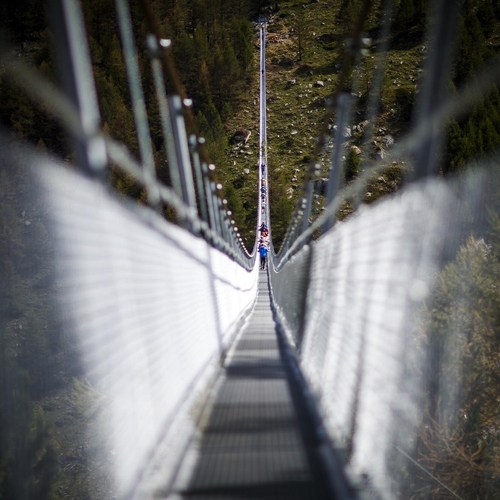 Мост соединяет два участка двухдневной туристической тропы Europaweg между горными поселками Грэхен и Церматт. Построили его всего за 10 недель. Дело рук инженеров и специалистов швейцарской компании SWISSROPE.