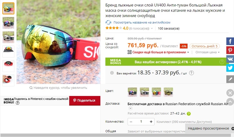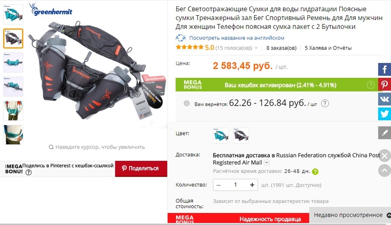 При поиске товаров мы пользовались расширением от кешбэк-сервиса Megabonus. Оно позволяет быстро сравнить разные магазины, а также увидеть размер кешбэка (возврата части от стоимости покупки покупателю) прямо на сайте AliExpress. Кроме этого, Megabonus выплачивает двойной кешбэк на первую покупку на AliExpress, а это значит, что можно сэкономить до 9,83% от стоимости товара.