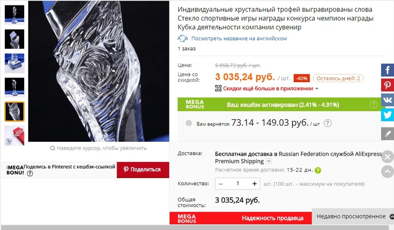 Ну, и конечно же, на Aliexpress можно приобрести кубки и награды. Возможно индивидуальное исполнение. Цены от 500 до 30 тыс. рублей и выше.