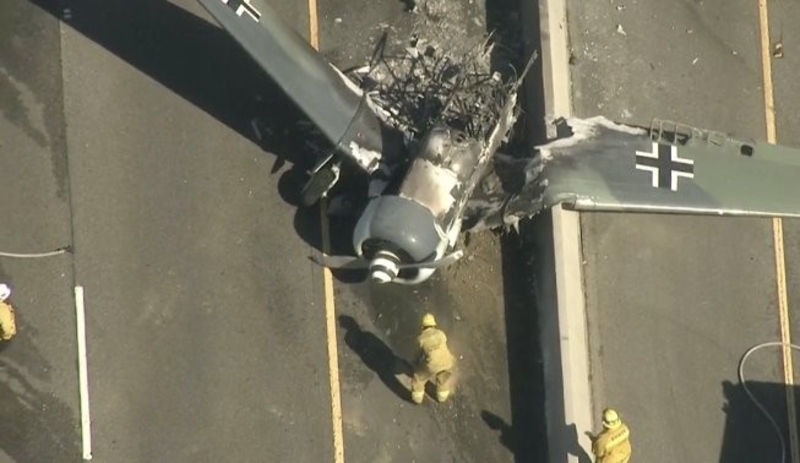 В американском штате Калифорния возле Лос-Анджелеса на дорогу свалился одномоторный самолет с крестами Luftwaffe (ВВС Германии времен Второй мировой войны) на крыльях. Упавший самолет загорелся. Обломки “птички“ нациста Рудольфа Геринга потушили пожарные.