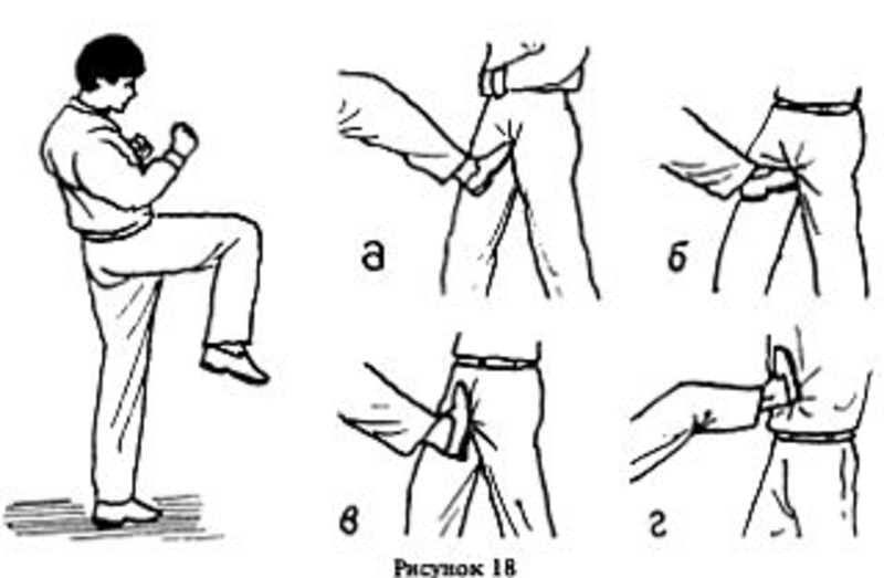 Удар подлый. Но почему это тебя должно остановить? В спорте эти удары запрещены, по-этому обороняться от их не учат. Бей нижней третью голени снизу вверх, натягивая носок на себя. Начнет отклоняться назад — попадешь пыром. Будет сближаться — нарвется на голень или колено. Попал — бей кулаком-молотом сверху в затылок. Не попал — бей свою любимую комбинацию: правый прямой — левый сбоку. Он закрыл руками голову — бей ногой в пах. Опустил руки вниз — работай в голову. И так продолжай пока противник не свалиться на вниз.