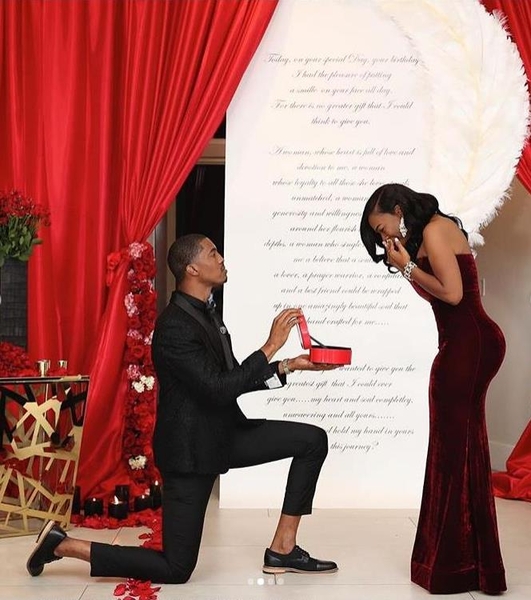 Сам мистер Браун встал на колено перед возлюбленной и открыл коробку в виде сердца.