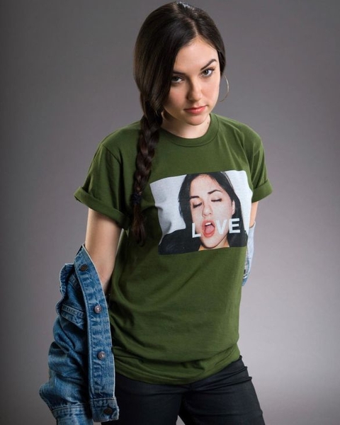 Но недавно актриса выложила фотографии в футболке собственного бренда из коллекции Love, которые она «украсила» принтами из порнофильмов с собственным участием.