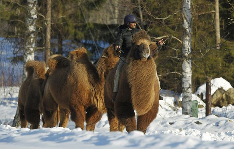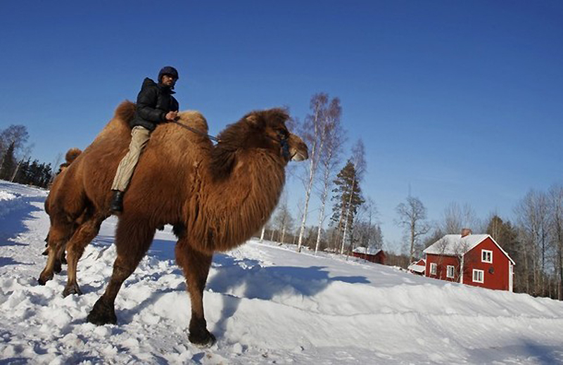 Откуда же там верблюды? Все просто: на берегу озера Викерн, в небольшой деревушке семейная пара в качестве милых домашних животных завела себе тройку… нет, не лошадей, а настоящих кораблей пустыни. Отныне вместо песка они «плавают» в снегах. А Али их с радостью выгуливает.