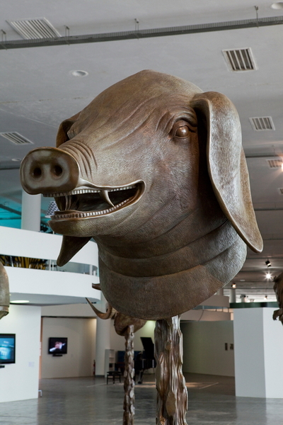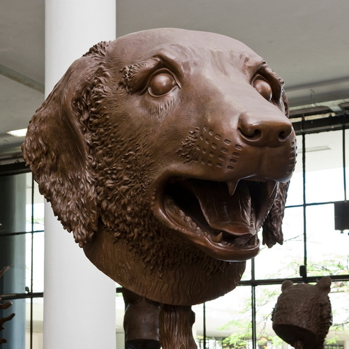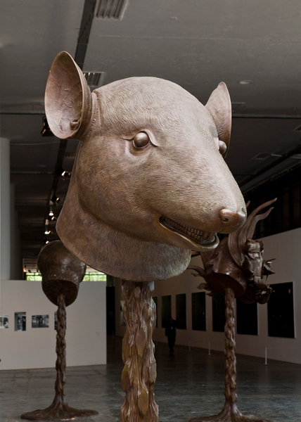 Зачем лепить огромную тушу быка, обезьяны или волкодава, если можно обойтись одной головой? К тому же, значительно экономятся расходные материалы, не считая уже трудозатрат. Именно так решил современный китайский художник Эй Вей Вей, изваяв из бронзы дюжину скульптур животных всех знаков Зодиака.