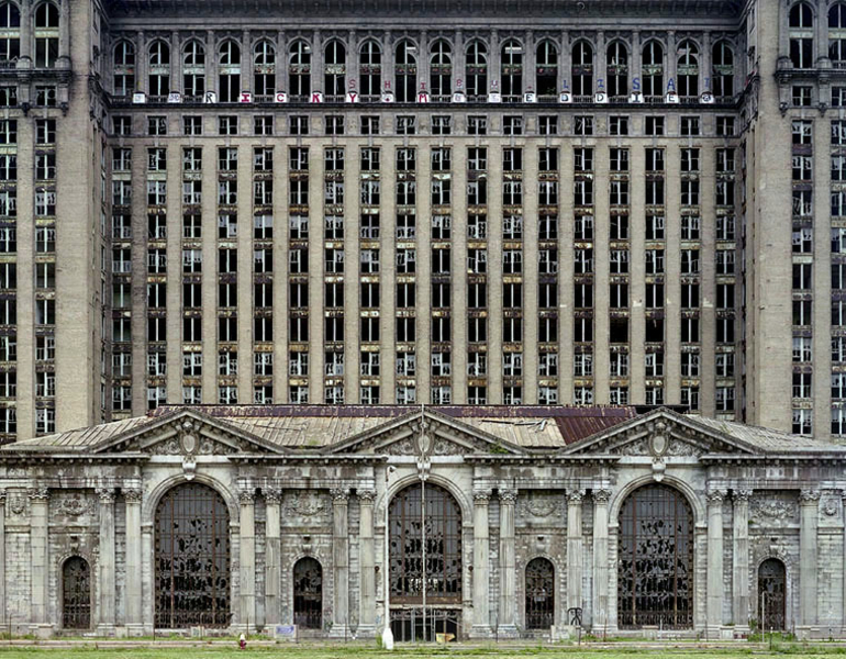 Детройт - колыбель американской экономической мощи – станет первой жертвой мирового кризиса. С него начнется уход в небытие и самих США. Так считают французские фотохудожники Ив Маршан и Роман Мефре. Они выпустили сборник апокалиптических картинок под названием Руины Детройта.