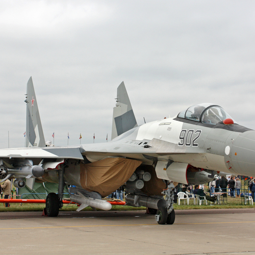 Су-35С – истребитель поколения 4++ большого радиуса действия, способный развивать скорость до 2,5 тысячи километров в час, вооруженный 30-миллиметровой пушкой и имеющий 12 точек подвески для навесного вооружения.