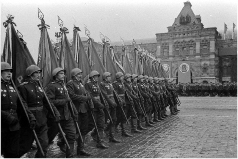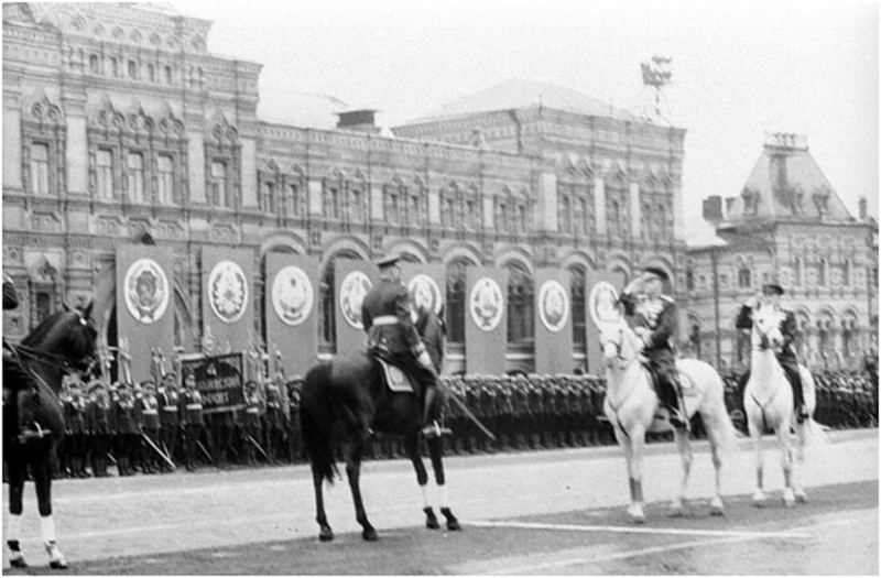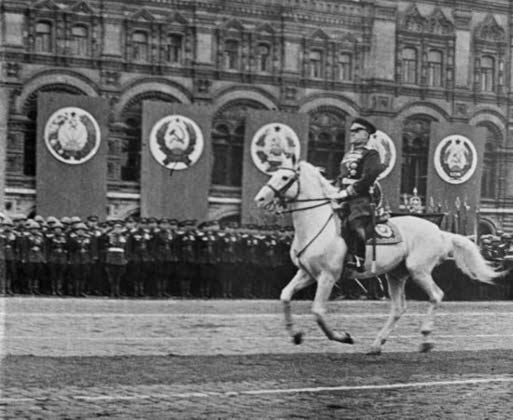 Парад проходил на Красной площади, где были выведены сводные полки фронтов, полк наркомата обороны, полк Военно-морского Флота, военные академии, военные училища и войска Московского гарнизона. Командовал парадом маршал Рокоссовский, а принимал, как известно – сам Жуков. На белом коне.