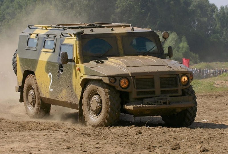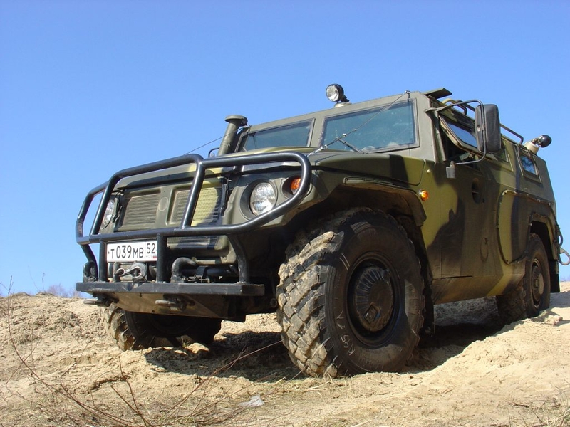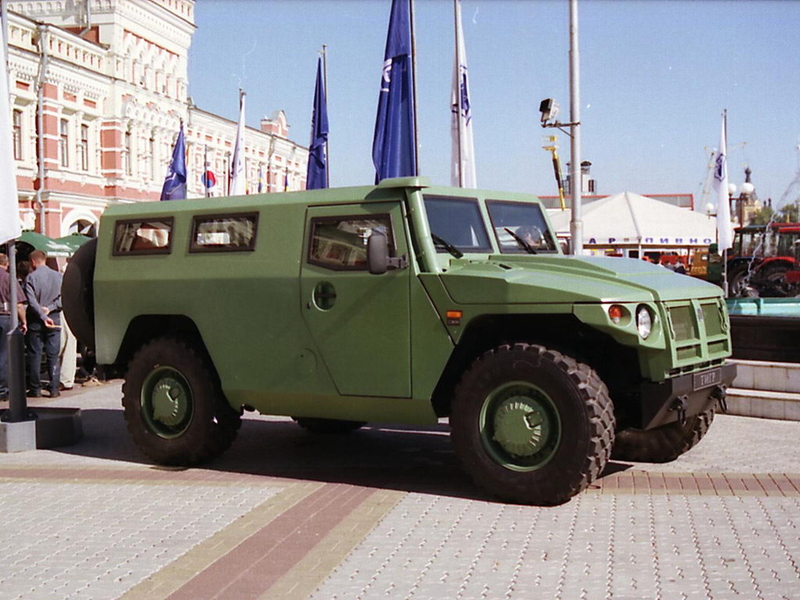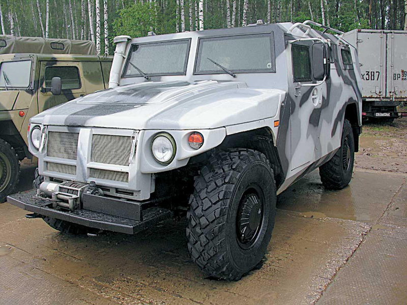 Автомобиль ГАЗ-2330 Тигр рассчитан на перевозку от шести до девяти человек либо 1,2 тонны груза, способен вести огонь из открывающегося люка в крыше, развивает скорость до 140 километров в час.