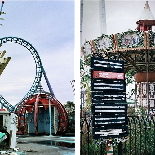 80% сооружений парка полностью уничтожены. Остался только Бэтмен – карусель, которая возвышалась над водой благодаря своей конструкции.