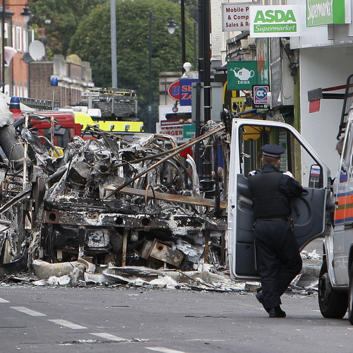 Соотечественники же Даггана не удовлетворились таким объяснением, подняв настоящий бунт в английской столице: разгромив родной район Тоттенхем, темнокожие протестанты взялись за соседние Энфилд, Эдмонтон, Далстон, Брикстон и Кройдон: повсюду летят бутылки с зажигательной смесью, имеют место акты мародерства и насилия, уже пострадало около 30-ти полицейских.