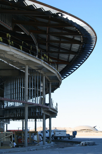 На сегодняшний день, как заявляют в руководстве амбициозного проекта Virgin Galactic, космопорт, который раскинулся на площади в 7,5 кв. км, готов уже на 90%. Уже может принимать космопланы трехкилометровая взлетно-посадочная полоса, близко к завершению строительство футуристического пассажирского терминала и огромного купола центра управления Space Operations Centre.