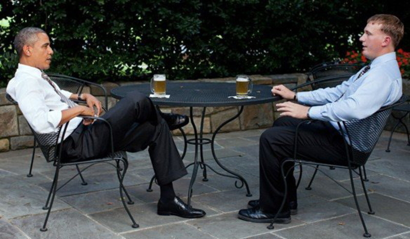Первая публичная демонстрация «пива от Барака» прошла на днях. Пенным напитком собственного приготовления президент США угостил гостя – героя афганской войны, сержанта Дакоту Мейера,  представленного к военной награде.