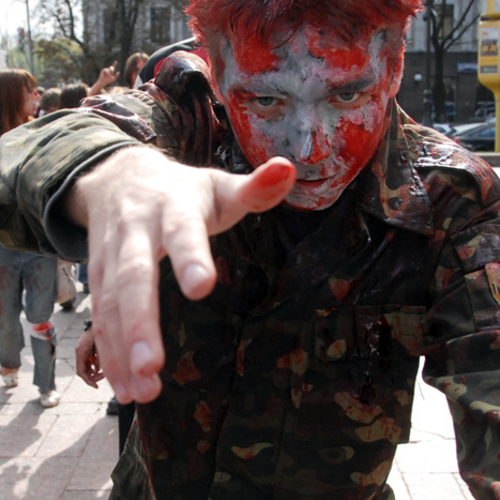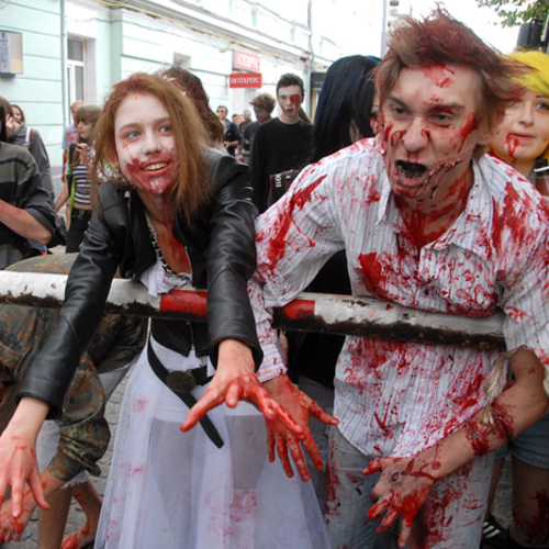 В субботу Киев подтвердил свою репутацию города-вурдалака, который высасывает кровь из регионов. 24 сентября киевляне и гости столицы напоролись на толпы молодчиков, крашеных под зомби. Десятки лже-мертвецов маршировали по центру Киева, все время норовя кого-нибудь сожрать.
