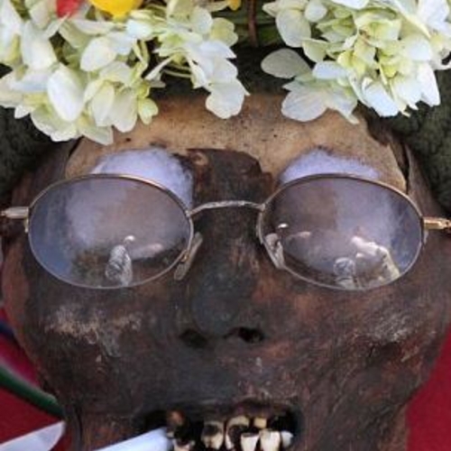 День черепа в Боливии: останки бродяг и бомжей выставляют на витринах и украшают всем, что есть под рукой