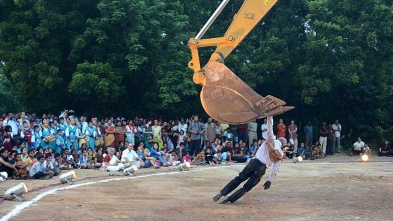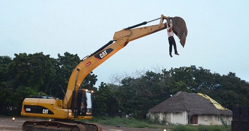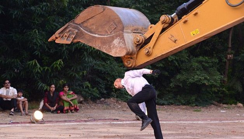 Говоришь, танцы - не мужское занятие? А если это пляски в компании желтого экскаватора, тогда что?