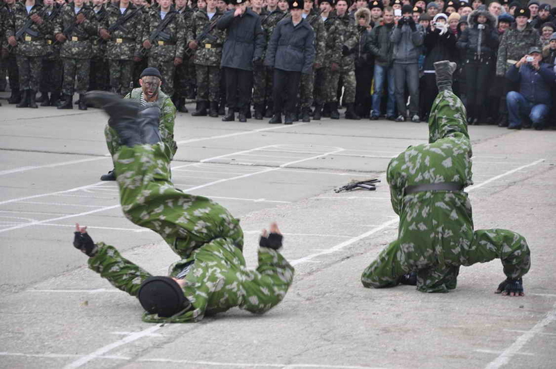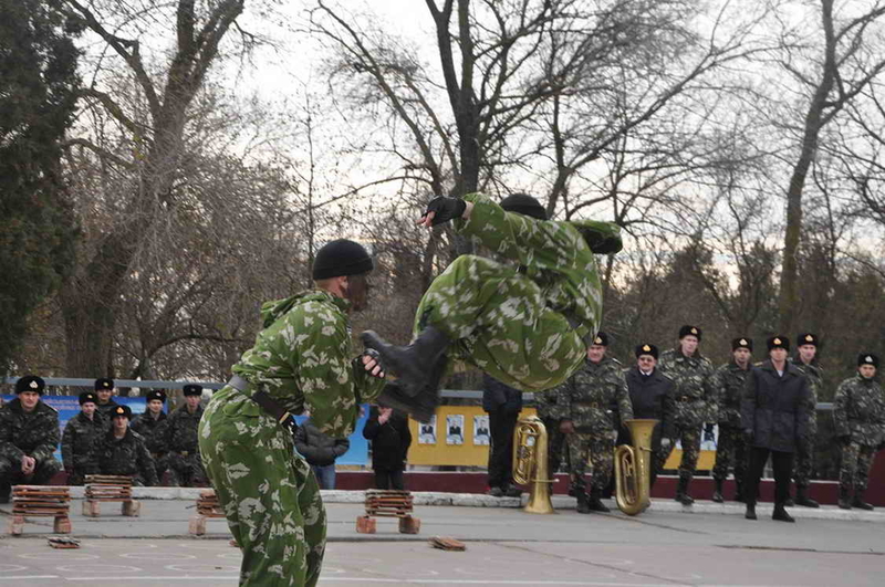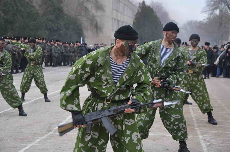Двести пятьдесят новобранцев со всей Украины пополнили ряды доблестных Черных беретов: в Керченском гарнизоне парни-призывники присягали на верность украинскому народу. Уже с самого утра командно-пропускной пункт гарнизона был в осаде - родственники новобранцев оккупировали половину территории, ожидая, как обычно, грандиозного зрелища от морпехов.