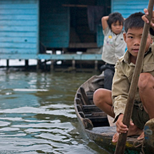 Камбоджийское озеро Тонлесап, неподалеку от которого находится знаменитый храмовый комплекс Ангкор Ват, считается самым крупным пресным водоемом Индокитая. На его глади находится знаменитая достопримечательность Камбоджи — плавучая деревня Компонг Луонг: жилые дома, кафе, магазинчики. И школа. Учатся в ней в основном сироты. Родители многих из них погибли во время рыбной ловли: в сезон дождей уровень воды в озере сильно поднимается, и ходить по нему на лодках становится опасно. Обеспечивать детей помогают туристы: каждая группа скупает все товары с прилавков местных лавок и буквально заваливает школьников игрушками, канцтоварами и сладостями.