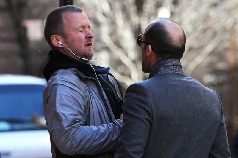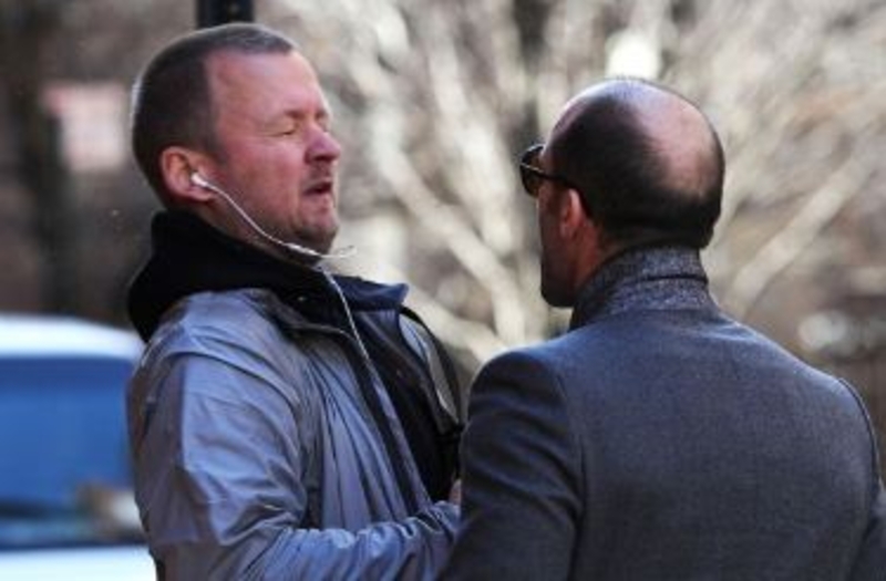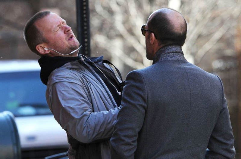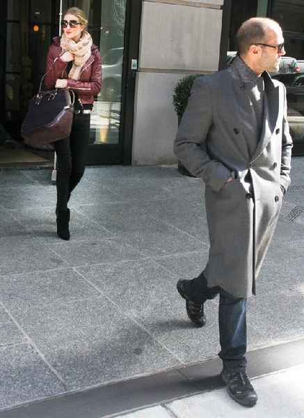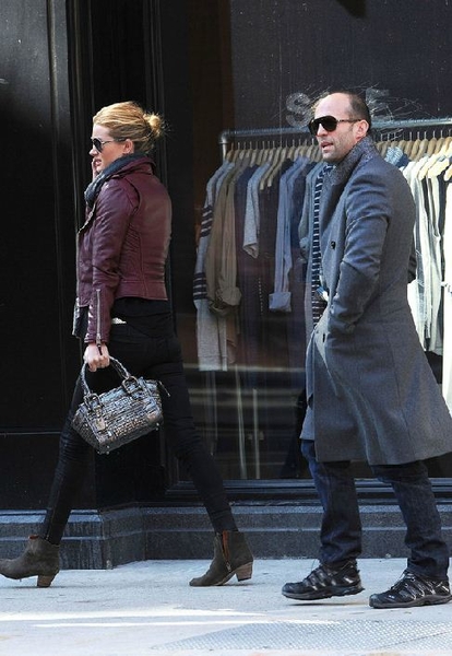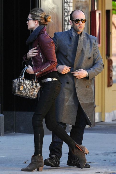 Выходя поутру из роскошных апартаментов в Нью-Йорке, которые Стэтхем снимает со своей подругой - известной моделью Рози Хантингтон-Уайтли, парень буквально наткнулся на поджидающего их папарацци.