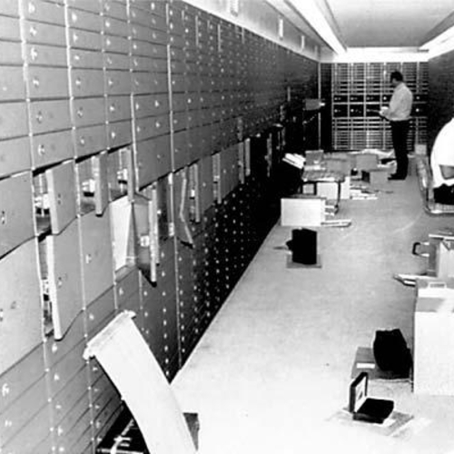 12 июля 1987 года двое мужчин зашли в лондонский банк якобы для того, чтобы арендовать индивидуальную депозитную ячейку. После того как банковский служащий вместе с охранником провели их в подвалы с сейфами, «клиенты» наставили револьверы на своих «гидов» и связали их. Чтобы никто не помешал грабить, один из налетчиков повесил на двери банка объявление «Хранилище временно закрыто» и запер дверь. Грабители унесли около 60 млн. фунтов стерлингов наличных (174 млн. долларов по сегодняшнему курсу). Спустя некоторое время вся банда была арестована. Однако до сих пор те миллионы так и не найдены.