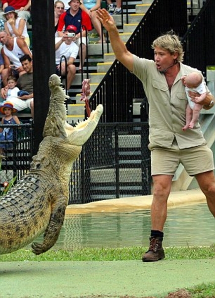 Наверное, многие из посетителей зоопарка в этот момент вспомнили, как маленький Боб в возрасте всего нескольких месяцев на руках у папы принимал участие в таком же кормлении страшных рептилий, чем, кстати, Стив Ирвин навлек на себя негодование чуть ли не полмира.