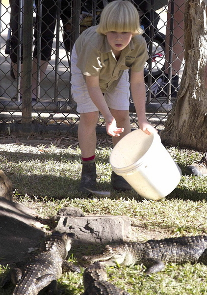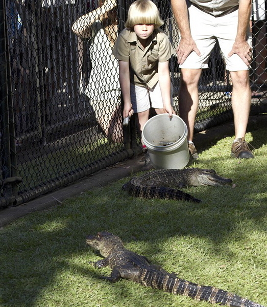 Последнее унаследованное качество на днях проявилось, что называется, сполна. На глазах у сотен посетителей Australia Zoo – зоопарка в австралийском Квинследне, которым владеет семья Ирвинов – белобрысый мальчишка в «униформе» того же фасона и цвета, какие любил его отец, прямо в вольере устроил кормление южноамериканских аллигаторов. В глаза Ирвина-младшего при этом не было и тени страха.