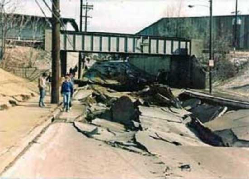 Утром этого дня в городе Луисвилль (штат Кентукки) произошла серия мощных подземных взрывов. Только по счастливой случайности, обошлось без человеческих жертв. Полицейские, летавшие в этот момент над городом на вертолете и наблюдавшие невероятное зрелище, описывали увиденное как картину из фильмов ужасов о конце света или массированной бомбардировке. Сразу в нескольких местах земля вздыбилась, на площади в несколько миль улицы были усеяны многочисленными глубокими воронками. Как потом выяснилось, запалом для взрывов послужила искра из выхлопной трубы одного из автомобилей, попавшая в канализационный коллектор. Следствие установило, что в подземной системе в большом количестве скопился взрывоопасный газ, образовавшийся из растворителя, слитого в коллектор местной пищевой компанией.