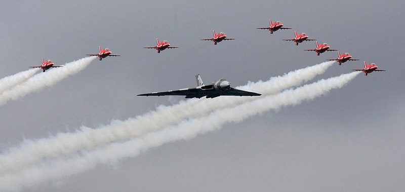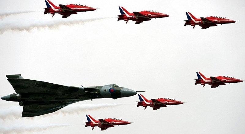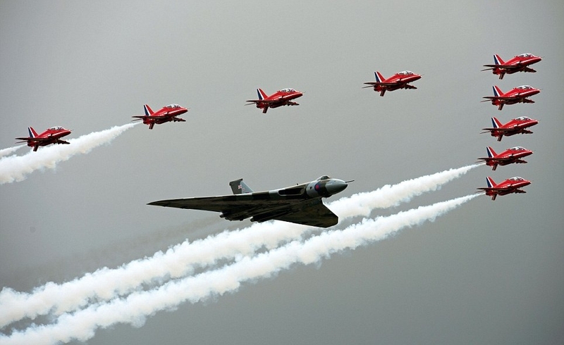 Небо над британским городом Хэмпшир стало площадкой для легендарного авиашоу: международный аэрокосмический салон Фарнборо проводится каждые два года и является крупнейшей экспозицией в Великобритании, а может и во всем мире. Любителям авиации в этом году поистине повезло увидеть захватывающее шоу. Уникальный бомбардировщик Avro Vulcan показал необычное представление.