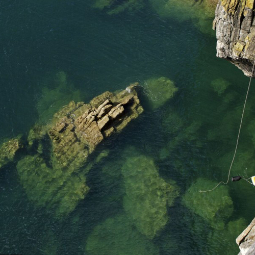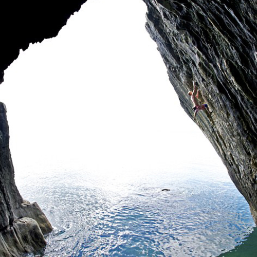 Поскольку его склон нависает над водной поверхностью под углом в 40 градусов, профессиональному любителю острых ощущений пришлось сначала вместе с небольшой надувной лодкой спуститься по веревке на воду, далее подплыть к основанию утеса, а затем отправиться в непродолжительное, но сложное и опасное путешествие вверх.