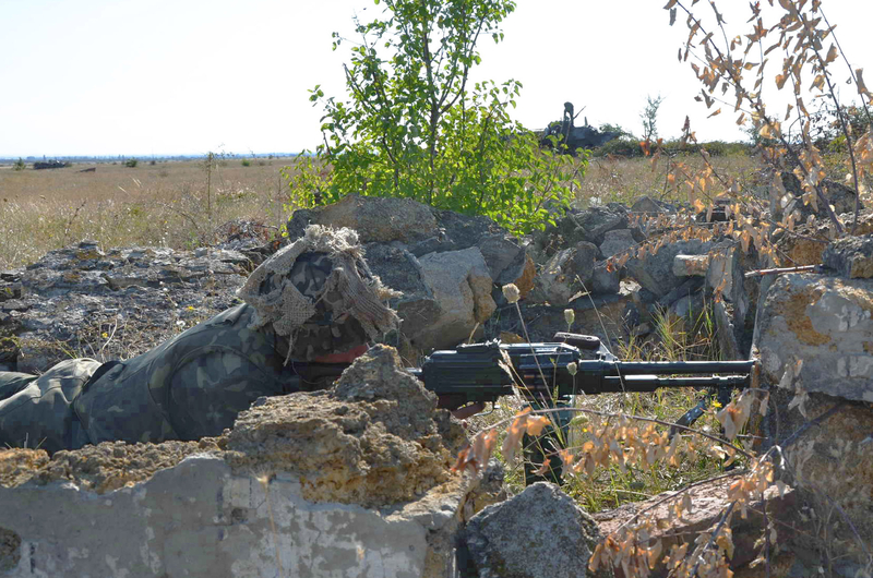 Правда, пришлось вызвать подмогу - авиацию: пару самолетов МиГ-29 и вертолетов Ми-24. А знойная крымская погода настолько увеличила опасность пожара, что морпехам пришлось вместо боевой стрельбы использовать имитацию. В остальном же - все по-честному.