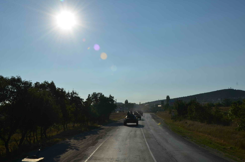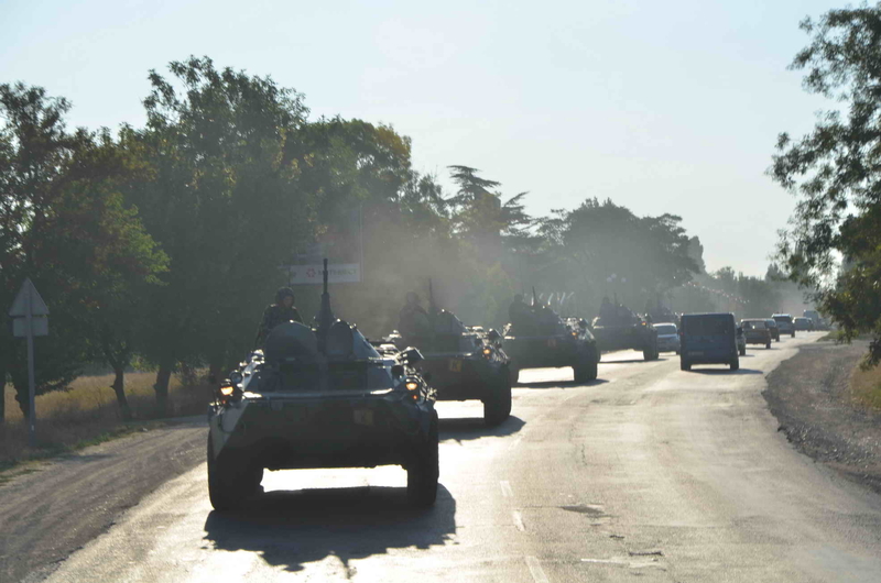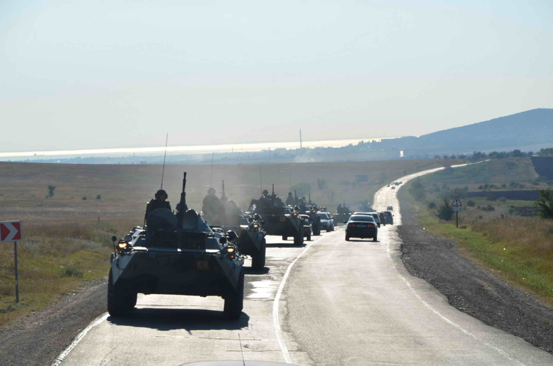 Воевать с терроризмом, пусть и условным - одно из важнейших занятий нашей армии. А уж в рамках Перспективы-2012 воображаемые террористы - вообще главный тренировочный объект морпехов. Чтобы сразиться с ними, морпехам пришлось пройти многокилометровый марш-бросок крымскими дорогами на БТР-80, занять оборону, замаскировать технику - а потом и выбить противников из важного объекта.