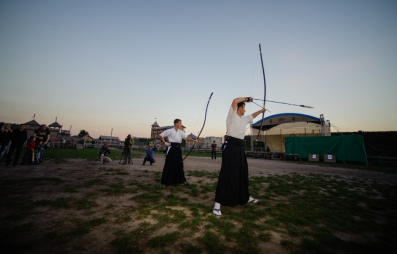 Порадовали пришедших и еще одним оригинальным зрелищем - чемпионатом конных лучников: попасть в мишень на полном скаку ой как непросто. Интересно, что луки, представленные на турнире, были не просто самые настоящие, боевые - а еще и воссозданные с исторической точностью по дошедшим до нас рисункам и чертежам. Монгольские, английские, древнеславянские и даже японские луки: не только увидеть, а и пострелять из раритетов смогли все желающие.