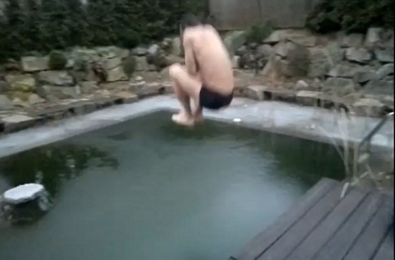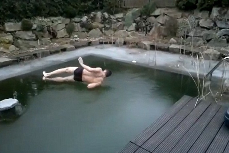 Это больно: Ныряльщик не смог пробить лед (ВИДЕО)