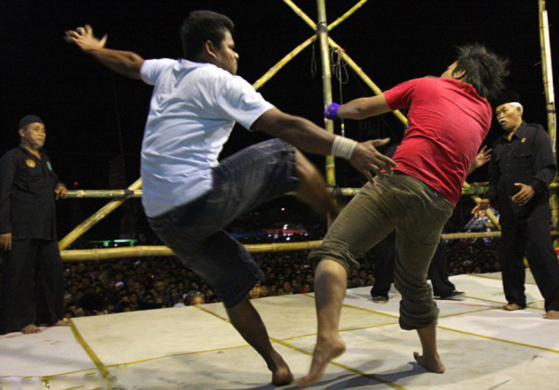 Учащиеся исламской закрытой школы-интерната сдавали экзамен на владение местным вариантом борьбы без правил – боевым искусством пенчак силат. Дрались ребята неистово, с отменным молодецким задором, а поединки останавливались только в двух случаях – либо побежденный, видя всю бесперспективность своих действий на ринге, выбрасывал на помост полотенце, либо рефери прекращали поединок в виду хлещущей крови из ран одного из противников.