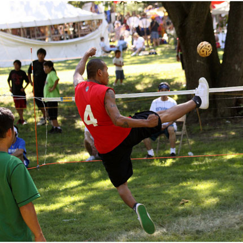 Популярный в Юго-Восточной Азии вид спорта. Представляет собой командную игру, ведущуюся на площадке, разделенной низкой сеткой, через которую игроки двух противостоящих команд перебрасывают мяч ногами и головой с целью приземлить его на чужой половине и не допустить падения мяча на своей половине площадки. Вобрал в себя элементы футбола, волейбола и гимнастики.