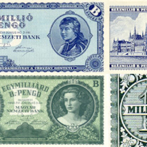 Вершина истории гиперинфляций принадлежит Венгрии. В 1946 в стране кризис так разбушевался, что цены удваивались каждые 15 часов. В результате была напечатана купюра с самым огромным числовым значением: один миллион миллиардов венгерских пенго. Самое печальное то, что такая гигантская сумма венгерских денег была равна всего лишь 20 американским центам.